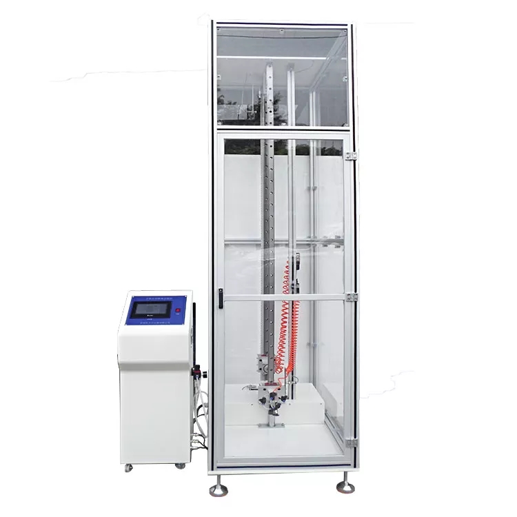 小件电子包装(手机、耳机、小家电) 优先选小型可编程定向跌落试验机,支持棱角、面、边多方位精准跌落,跌落高度可调(0.5–2m 常见范围),配备小型夹具固定产品,满足电子产品包装频繁抽检需求。